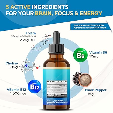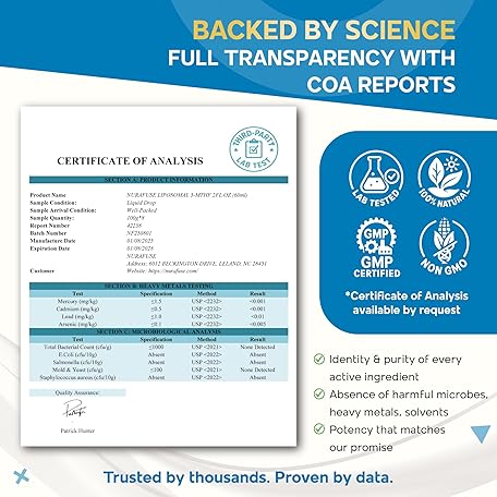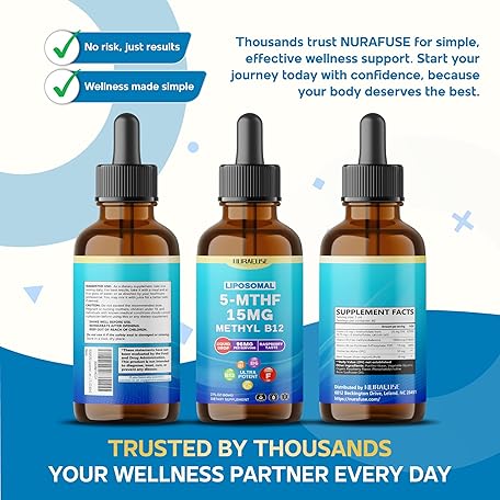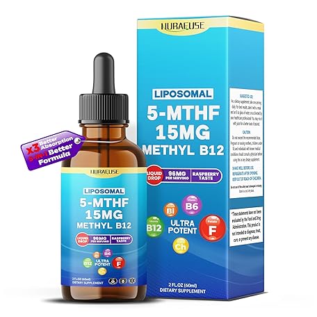 Thông tin sản phẩm Liposomal 5-MTHF 15mg & Methyl B12 Liquid Drops – 96mg per Serving, Ultra Potent, Raspberry Taste – 2 FL OZ (60ml)