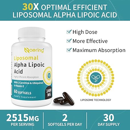 Thông tin sản phẩm Liposomal Alpha Lipoic Acid 1400mg Softgels, ALA Supplement with L-Carnitine 1000mg, Ubiquinol (Active CoQ10) 100mg and Vitamin E 10mg,Alpha-Lipoic Acid for Antioxidants, Nerve,Energy 60 Softgels