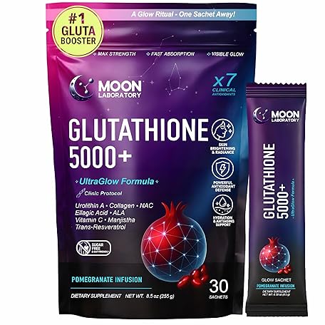 Liposomal Glutathione 5000mg Powder Drink – 7 Antioxidants Complex with Urolithin A, NAC, ALA, Resveratrol, Manjistha & Collagen – Skin Brightening, Anti-Aging, Detox, Hydration – 30 Sachets