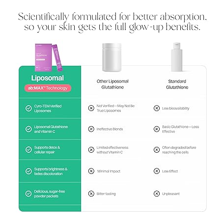 Thông tin sản phẩm Liposomal Glutathione Powder, 125mg L-Glutathione Sugar-Free Flavored Packets, 100mg Vitamin C, Powerful Antioxidant Supplement for Skin, Beauty Health & Detox Support, 30 Packets - Lemon