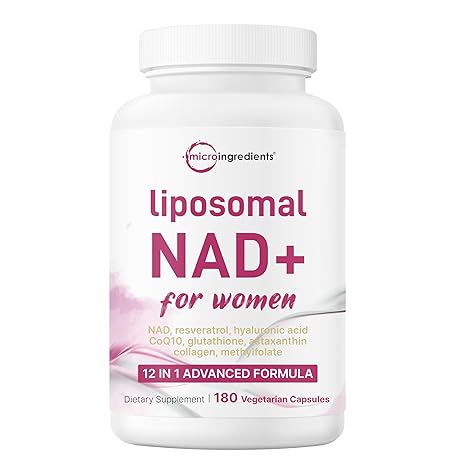 Liposomal NAD+ for Women Complex, 180 Veggie Capsules | 12-in-1 Advanced NAD Formula with Resveratrol, Hyaluronic Acid, Glutathione, & Collagen | NMN Pathway Supplement