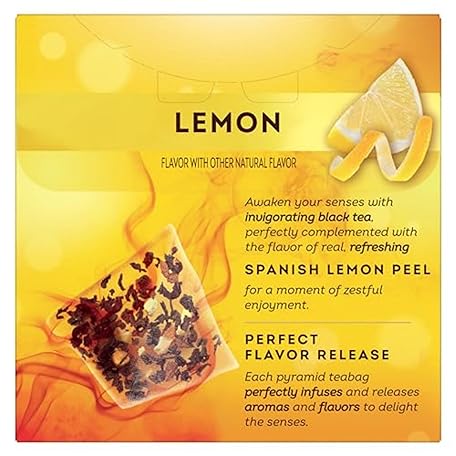 • Lipton Black Tea Lemon, Pyramid Tea Bags, Flavored Teabags for a Refreshing Cup of Tea, 20 Total Tea Bags