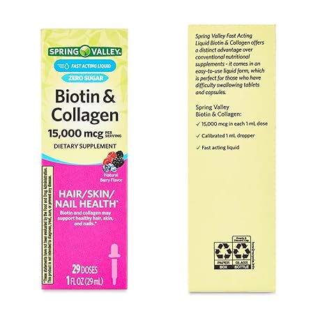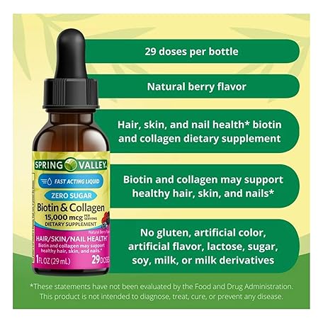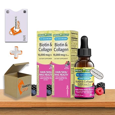 Sản phẩm Liquid Biotin & Collagen 15000 mcg • Hair, Skin & Nails Support • Natural Berry Flavor Drops • 1 fl oz by Spring Valley + Venanci’os Sticker (Pack of 2) đang được bán với giá ưu đãi là $27.2391 tại nước Mỹ.