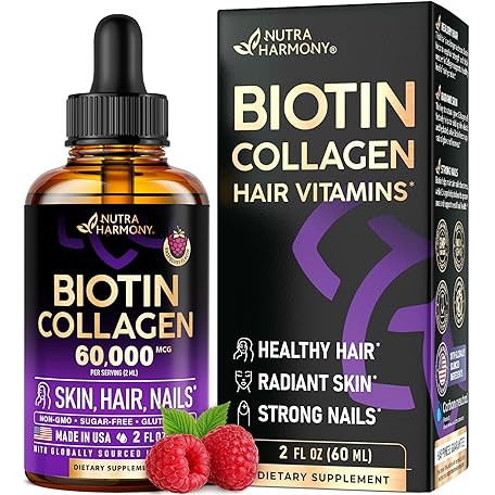 Thương hiệu NUTRAHARMONY là cái tên nổi tiếng được rất nhiều khách hàng trên thế giới chọn lựa. Với kiểu dáng đẹp mắt, sang trọng, sản phẩm Liquid Biotin & Collagen - Vitamins for Hair Growth Support for Women & Men - Extra Strength 60000 mcg Drops - B7 Supplement - Strong Nails & Healthy Skin - 98% Faster Absorption Than Pills là sự lựa chọn hoàn hảo nếu bạn đang tìm mua một món cho riêng mình.