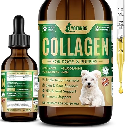 Liquid Collagen for Dogs, Natural Dog Collagen for Skin & Coat Support, Immune Support, Joint & Mobility Care with MSM, Middle-Aged and Older Dogs (Bacon Flavor - 60ml)