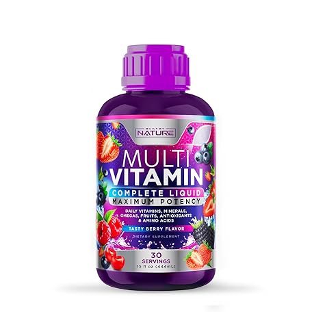 Liquid Multivitamin for Women, Men, and Kids - Liquid Vitamins Supplement for Adults - Natural Multimineral - Vegan, Non-GMO, Gluten Free, Sugar Free – Delicious Berry Flavor - 15 Fl Oz, 30 Servings