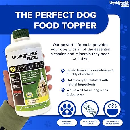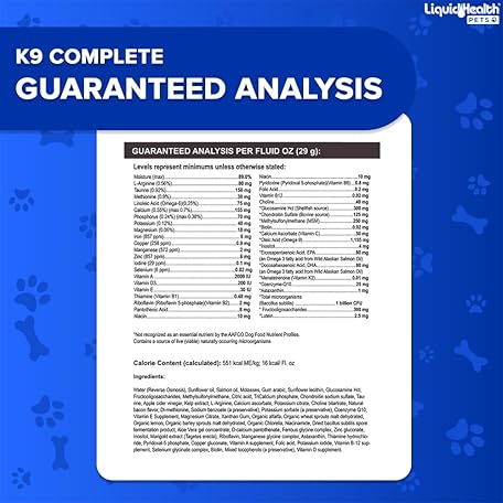 Thông tin sản phẩm LIQUIDHEALTH Pets K9 Complete 8-in-1 Liquid Multivitamin for Adult Senior Dogs & Puppies, All in One Complete Formula Canine Vitamins for Skin & Coat, Joint Health, Immune Support - USA Made (32 oz)