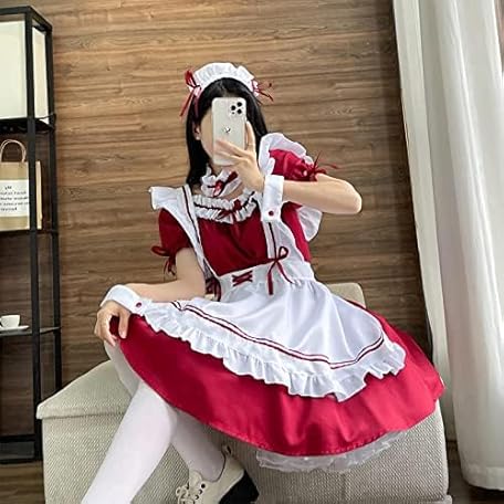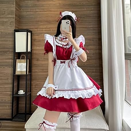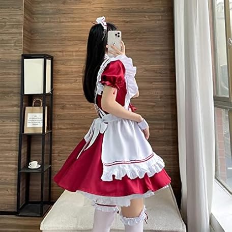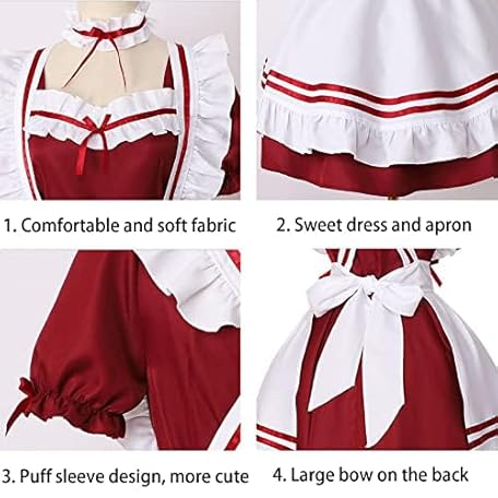 • LISANEK Maid Outfit Anime Cosplay Lolita Maid Dress French Maid Costume Plush cat ear Socks set