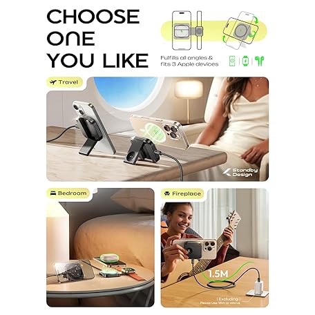 Thông tin sản phẩm LISEN for MagSafe Charger Stand for iPhone Magnetic Apple Watch Airpods Charging, Airplane Gadgets Magsafe Kickstand for iPhone Wireless Charger Gifts for Women Men Travel Essentials