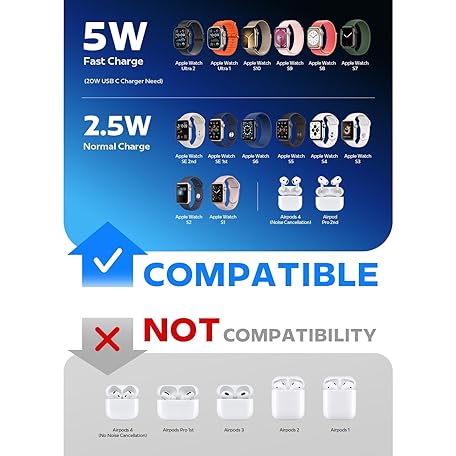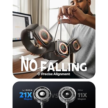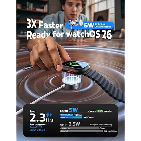 LISEN LISEN for Apple Watch Charger Fast Charging 5W[30mins=80%Charged] USB C Fastest iWatch Charger Fast Charging Series 11/ Ultra 3 [3.3FT]20W Apple Watch Block for iWatch Ultra 3/2 Series 11 10 9 8 7 SE3