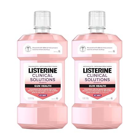 Thông tin sản phẩm Listerine Clinical Solutions Gum Health Antiseptic Mouthwash, Antigingivitis & Antiplaque Oral Rinse Kills Germs for Healthier Gums, Reduces Gingivitis in 1 Week, ICY Mint, Twin Pack, 1 L, 2 Pack