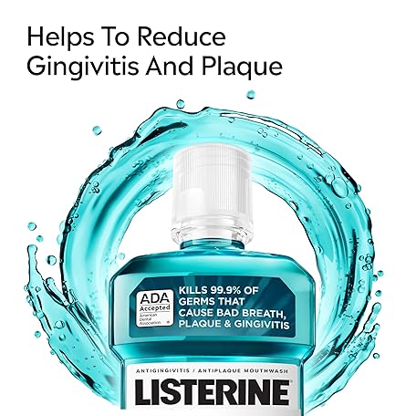 Thông tin sản phẩm Listerine Cool Mint Antiseptic Mouthwash, Kills 99.9% of Germs That Cause Bad Breath, Plaque & Gingivitis, ADA Accepted, Clinically Proven, Cool Mint Flavor, for Adults, 1L Bottles, 2 Pack
