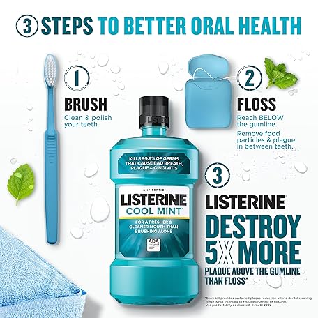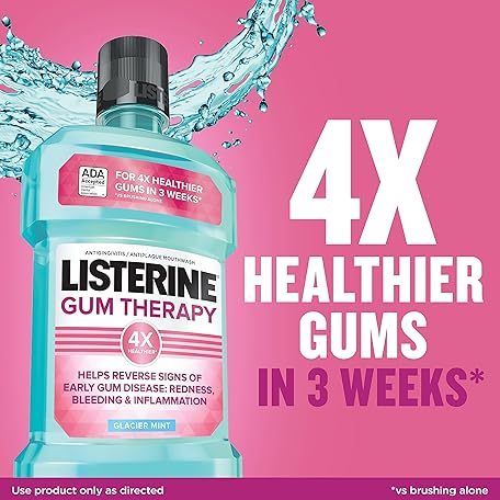 Thông tin sản phẩm Listerine Cool Mint Antiseptic Mouthwash to Kill 99% of Bad Breath Germs and Gum Therapy Mouthwash in Glacier Mint to Help Reverse Signs of Early Gingivitis, Convenience Pack, 2 x 1 L