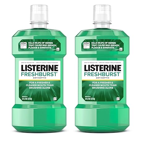 Thông tin sản phẩm Listerine Freshburst Antiseptic Mouthwash for Bad Breath, Kills 99.9% of Bad Breath Germs & Fights Plaque & Gingivitis, ADA Accepted Mouthwash, Spearmint, Convenience Pack, 2 x 1 L