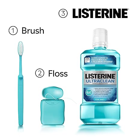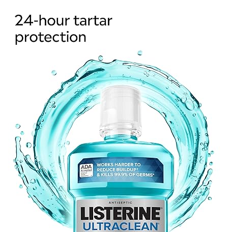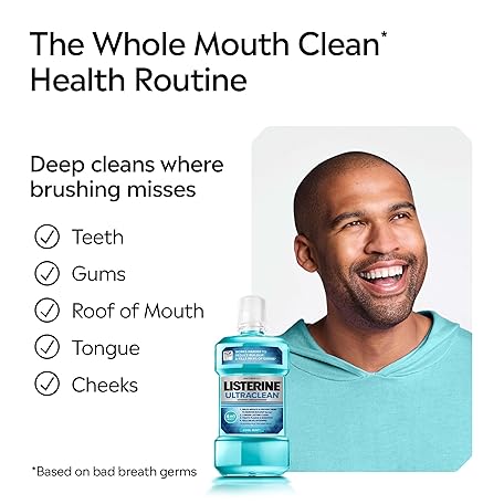 Thông tin sản phẩm Listerine Ultraclean Oral Care Antiseptic Mouthwash, Everfresh Technology to Help Fight Bad Breath, Gingivitis, Plaque & Tartar, ADA-Accepted Oral Rinse, Cool Mint, 1 L, Pack of 2