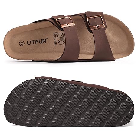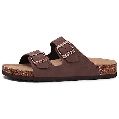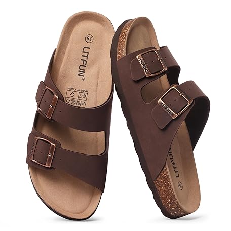 • Litfun Women's Cork Footbed Sandal Summer Slip On Slide Sandals with Adjustable Buckle