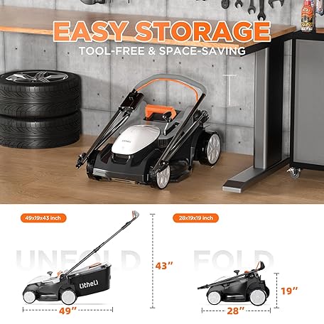 • Litheli 40V (2 x 20V) 16" Electric Lawn Mower Cordless, Walk Behind Lawn Mower with 6-Height Adjust, Portable & Lightweight Push Battery Powered Lawn Mower (2 * 4.0AH Batteries Included)