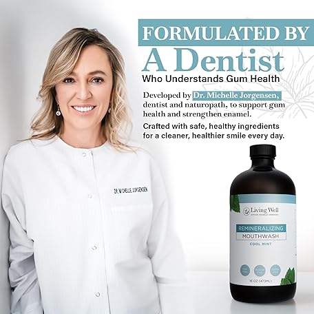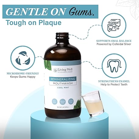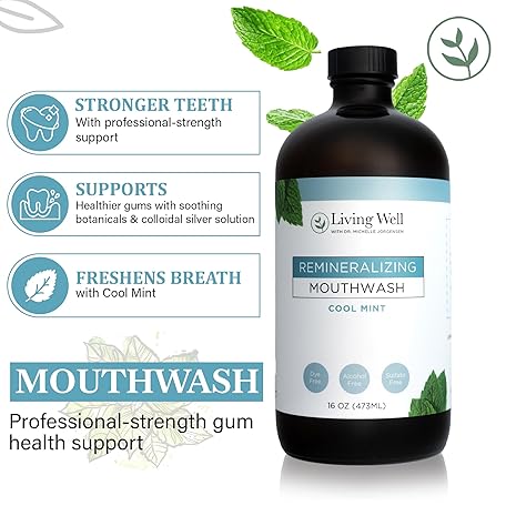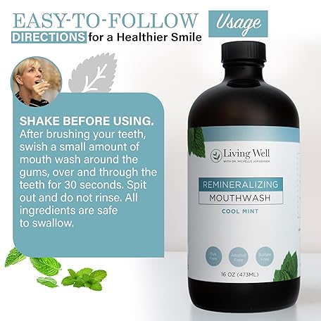 Living Well with Dr. Michelle Cool Mint Remineralizing Mouthwash | Hydroxyapatite & Colloidal Silver Formula | Alcohol-Free | Fluoride-Free Mouth Rinse