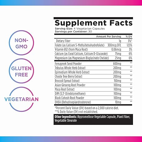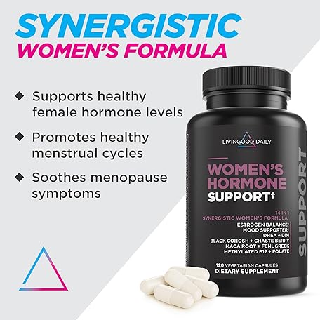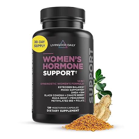 • Livingood Daily Women’s Hormone Support Supplement, Estrogen Balance with Fenugreek, Black Cohosh, Chasteberry, DIM, Natural PMS & Menopause Support, Non GMO, Gluten Free, Vegetarian Capsules, 120 Ct