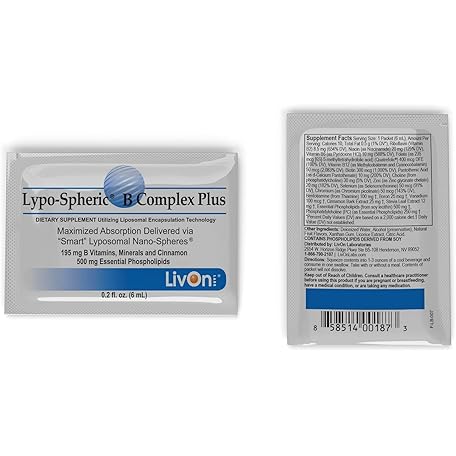 Thông tin sản phẩm LivOn Laboratories Lypo-Spheric B Complex Plus – 190 mg B Vitamins, Minerals & Cinnamon Per Packet – Liposome Encapsulated for Maximum Bioavailability – Non-GMO Essential Phospholipids (1 Box)