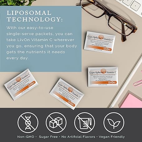 Thông tin sản phẩm LivOn Laboratories Lypo–Spheric Vitamin C – 1,000 mg Vitamin C & 1,000 mg Essential Phospholipids Per Packet – Liposome Encapsulated for Improved Absorption – Non–GMO(2 Cartons,60 Packets)