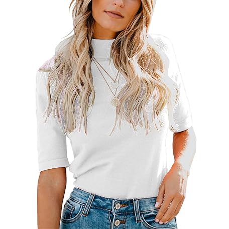 • LIYOHON Womens Tops Dressy Casual Mock Turtleneck Business Short Sleeve T Shirts Going Out Tops 2025