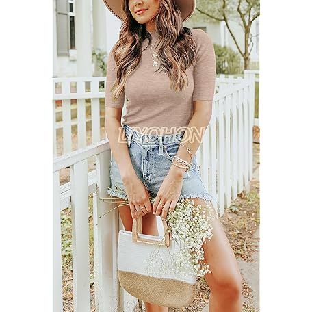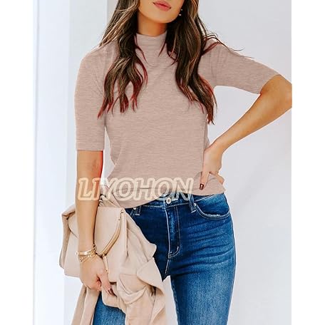 LIYOHON Womens Tops Dressy Casual Mock Turtleneck Business Short Sleeve T Shirts Going Out Tops 2025