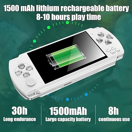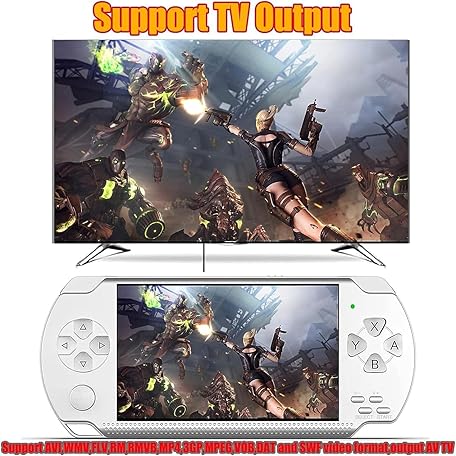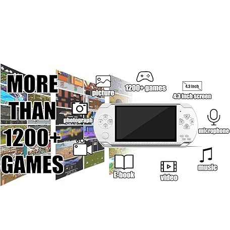 Thông tin sản phẩm LKTINA Handheld Game Console, Built-in 1200 Games 4.3’’ HD Screen Retro Gaming System, Support TV Output, Portable Rechargeable Game Console with Dual Joystick, Best Gift for Kids and Adult (White)