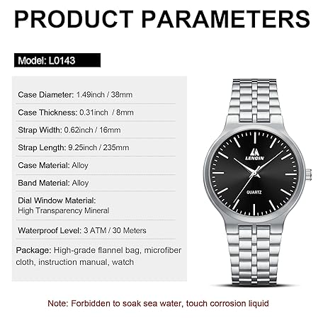 Sản phẩm LN LENQIN Mens Stainless Steel Watches Daily Waterproof Ladies Analog Quartz Wrist Watches Gender-Neutral Minimalist Watch đang được bán với giá ưu đãi là $10.8891 tại nước Mỹ.