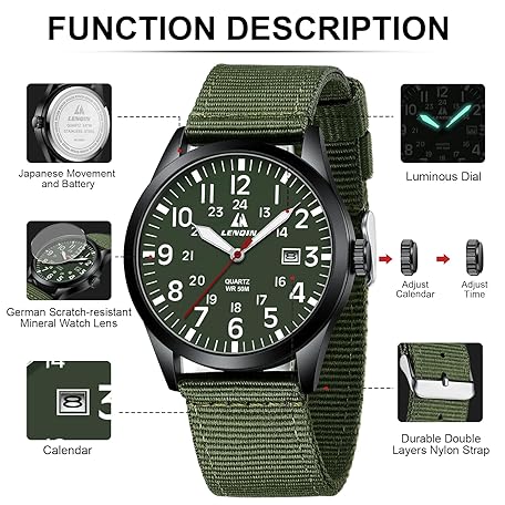 Sản phẩm LN LENQIN Mens Watches Unisex Military Sport Nylon Strap Stylish Luminous Fashion Analog Quartz Watch for Men Waterproof Army Tactical Casual Wristwatch đang được bán với giá ưu đãi là $10.8891 tại nước Mỹ.