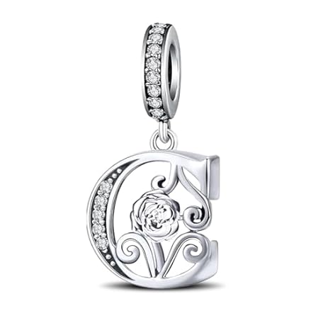 LNQOBU Complete A~Z Alphabet Charm Letter Beads, Solid 925 Sterling Silver with Cubic Stones Rose Alphabet Charm fits Pandora Bracelets Necklace Women Jewelry