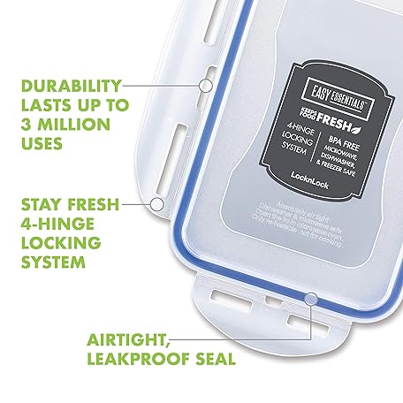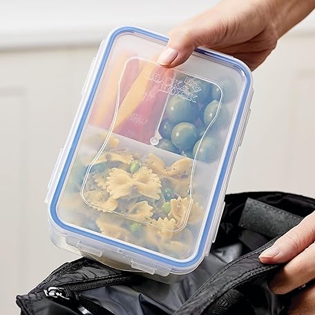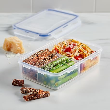Thông tin sản phẩm LOCK & LOCK Easy Essentials On The Go Meal Prep Lunch Box, Airtight Containers with Lid, BPA Free, Rectangle (3 Section) -27 oz, Clear