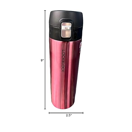 Thông tin sản phẩm LOCK & LOCK Feather Light Stainless Steel Vacuum Insulated Thermal Travel Mug, 17 oz, Ruby Red