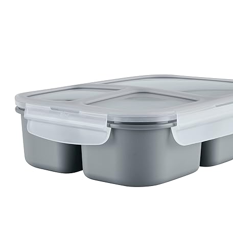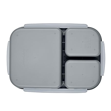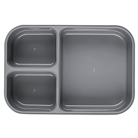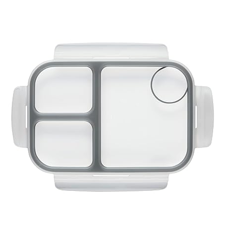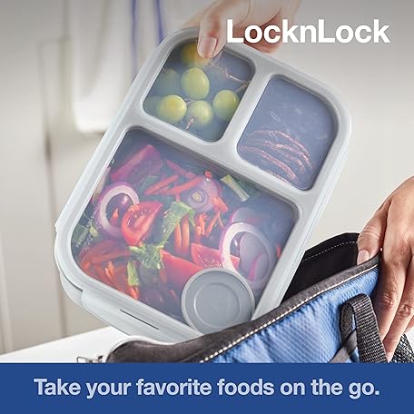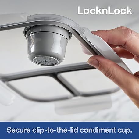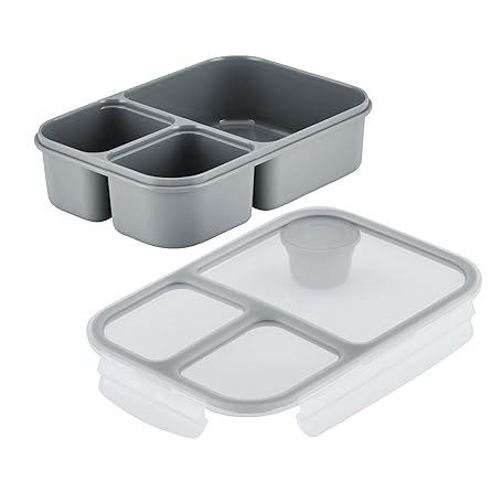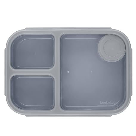 LOCK & LOCK LocknLock On the Go Meals Three Compartment Divided Lunch Box Container with Sauce Cup for School or Work, 50.7-Ounce, Gray