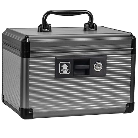 Lockbako Medicine Lock Box with Key, Alluminum Alloy Box for Medication,First Aid Box with a Removeable Tray to Store Medicines & Pills for Home,Black 10 * 6.89 * 6.89 Inch