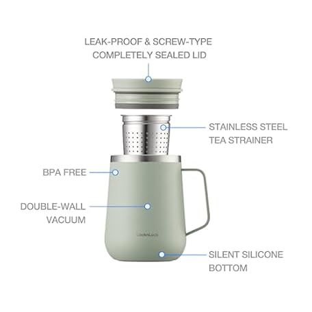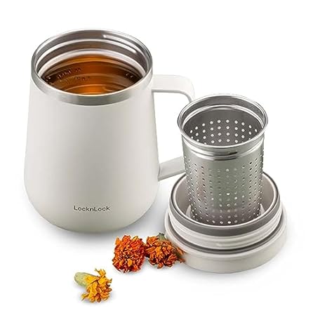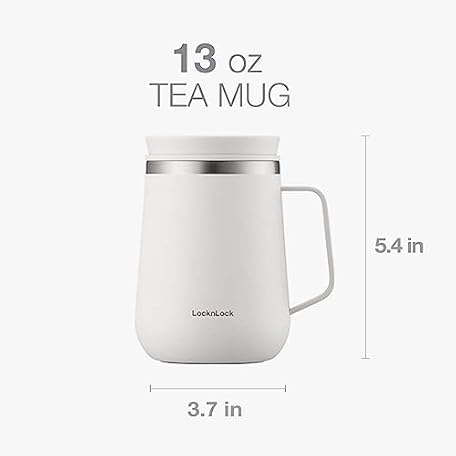 Thông tin sản phẩm LocknLock Metro Tea Mug Ivory 13oz/400ml, Coffee Mug Cups with Tea Infuser Strainer, Lid and Handle, Double Wall Stainless Steel Vacuum Insulated Travel Tumbler