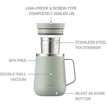 Thông tin sản phẩm LocknLock Metro Tea Mug Violet 13oz/400ml, Tea and Coffee Mug Cups with Tea Infuser Strainer, Lid and Handle, Double Wall Stainless Steel Vacuum Insulated Travel Tumbler
