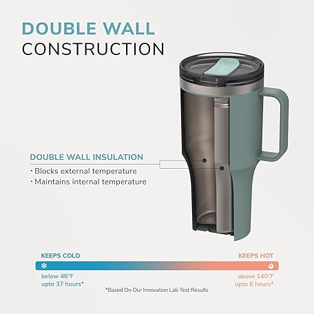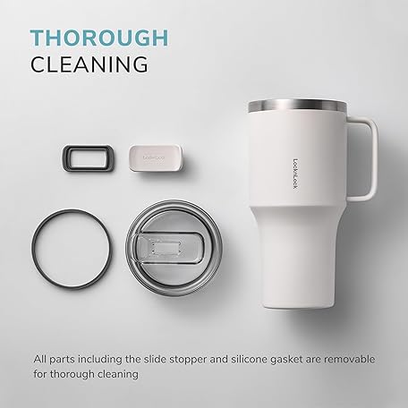 Thông tin sản phẩm LocknLock Metro Travel Mug, Premium 18/8 Stainless Steel Tumbler Cup for Hot and Cold Drinks, Double Wall Insulated with Handle and Lid, Ivory, 27oz