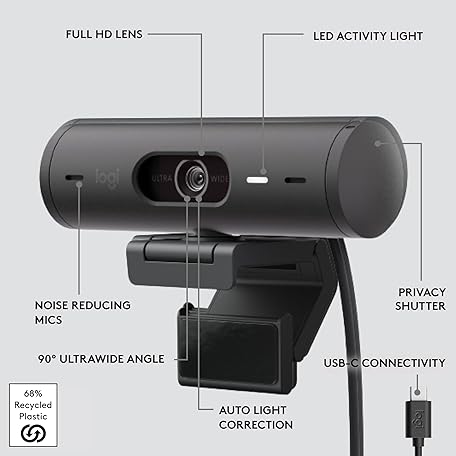 Thông tin sản phẩm Logitech Brio 501 Full HD Webcam with Auto Light Correction, Show Mode, Noise Reduction Mics, Privacy Cover, Works with Microsoft Teams, Google Meet, Zoom, Nintendo Switch 2 new GameChat mode - Black