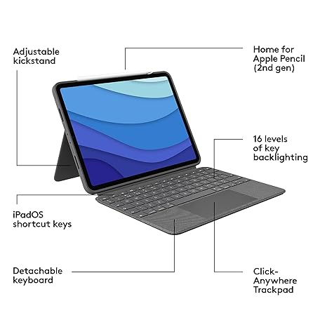 Thông tin sản phẩm Logitech Combo Touch iPad Pro 11-inch (1st, 2nd, 3rd, 4th gen - 2018, 2020, 2021, 2022) Keyboard Case - Detachable Backlit Keyboard, Click-Anywhere Trackpad - Oxford Gray; USA Layout