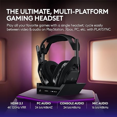 Thông tin sản phẩm Logitech G Astro A50 X Multi-Platform Wireless Gaming Headset + Base Station for PS5/Xbox/PC: PLAYSYNC Video & Audio Switcher, HDMI 2.1 4K 120Hz VRR, 24bit/48kHz, 24hr Battery, 2.4GHz & BT - Black