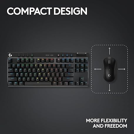 Logitech G PRO X TKL LIGHTSPEED Wireless Gaming Keyboard, Ultra-Portable Tenkeyless Design, LIGHTSYNC RGB, PBT keycaps, Tactile Switches (GX Brown) - Black (Renewed)