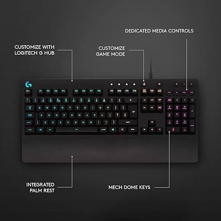 Thông tin sản phẩm Logitech G213 Prodigy Gaming Keyboard, LIGHTSYNC RGB Backlit Keys, Spill-Resistant, Customizable Keys, Dedicated Multi-Media Keys – Black