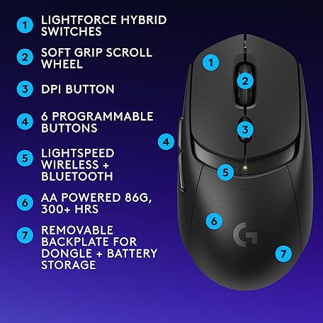 Thông tin sản phẩm Logitech G309 Lightspeed Wireless Gaming Mouse, Lightweight, LIGHTFORCE Hybrid Switches, Hero 25K Sensor, 86g & 300+ hr Battery Life with AA Battery, 6 Programmable Buttons, PC & Mac - Black