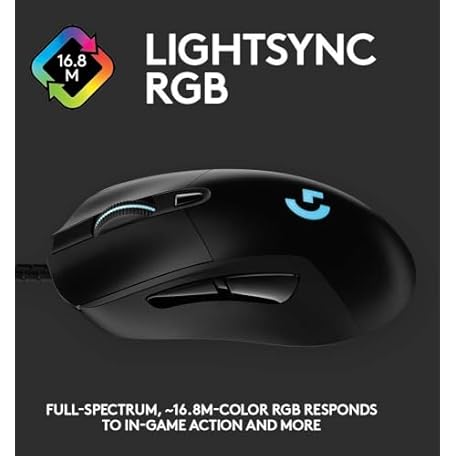 Thông tin sản phẩm Logitech G403 Hero 25K Gaming Mouse, Lightsync RGB, Lightweight 87G+10G optional, Braided Cable, 25, 600 DPI, Rubber Side Grips, Black
