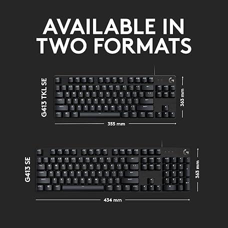 Thông tin sản phẩm Logitech G413 TKL SE Mechanical Gaming Keyboard - Compact Backlit Keyboard with Tactile Mechanical Switches, Anti-Ghosting, Compatible with Windows, macOS - Black Aluminum