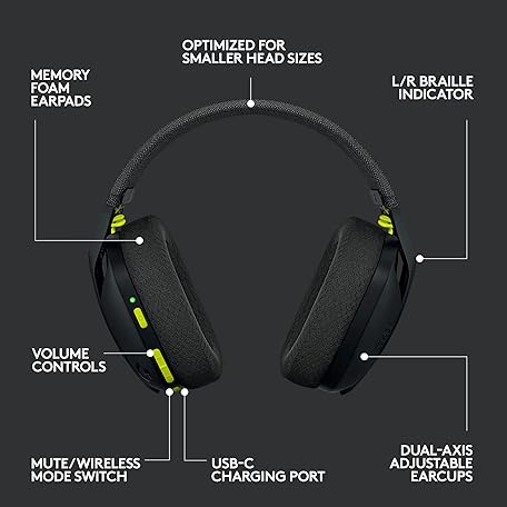 Thông tin sản phẩm Logitech G435 LIGHTSPEED and Bluetooth Wireless Gaming Headset - Lightweight over-ear headphones, built-in mics, 18h battery, compatible with Dolby Atmos, PC, Mobile - Black
