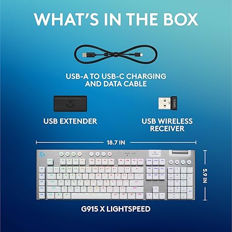 Thông tin sản phẩm Logitech G915 X Lightspeed Wireless Mechanical Gaming Keyboard, Double-Shot PBT Keycaps, Fully Programmable Keys, RGB Backlit Mac/PC Gaming Keyboards, Aluminum Finish, GL Tactile Switches, White