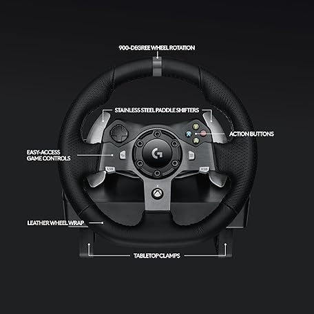 Thông tin sản phẩm Logitech G920 Driving Force Racing Wheel and Floor Pedals, Real Force Feedback, Stainless Steel Paddle Shifters, Leather Steering Wheel Cover for Xbox Series X|S, Xbox One, PC, Mac - Black