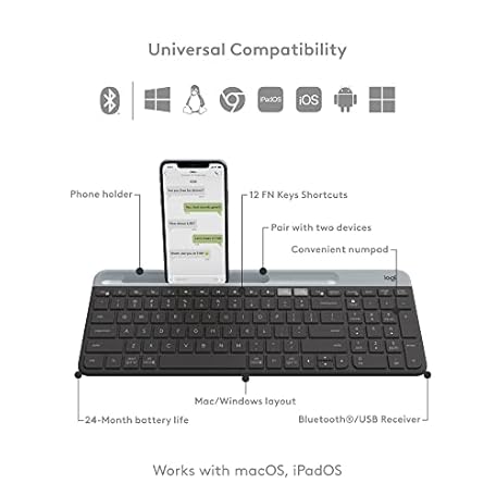 Thông tin sản phẩm Logitech K585 Multi-Device Slim Wireless Keyboard, Built-in Cradle for Device; for Laptop, Tablet, Desktop, Smartphone, Win/Mac, Bluetooth/Receiver, Compact, Easy Switch, 24 Month Battery - Graphite